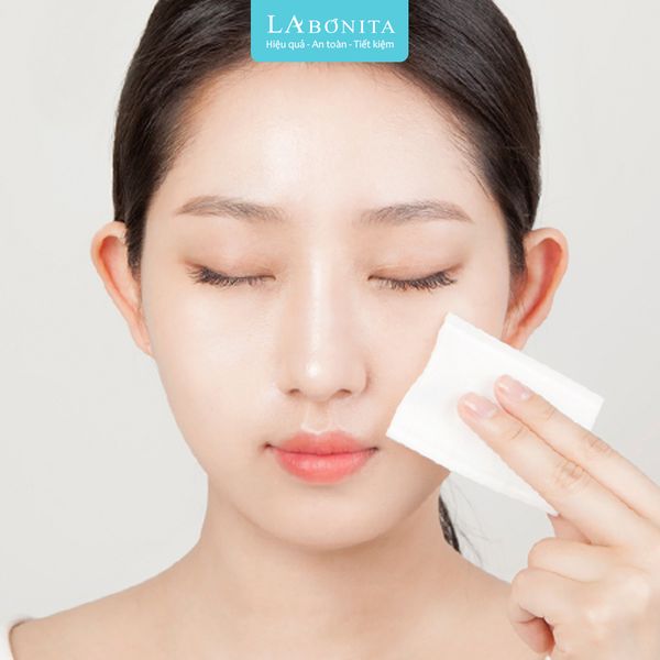 Làm sạch da với sữa rửa mặt, sau đó thấm nhẹ để hút hết phần nước thừa có trên da bằng khăn bông sạch. Tiếp đến dùng bông tẩy trang hoặc bông gòn sạch, cho lượng nước hoa hồng vừa đủ và đắp lên da. Sau 5 phút bạn sẽ cảm nhận làn da của mình căng mịn ngậm nước.